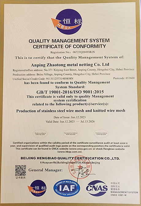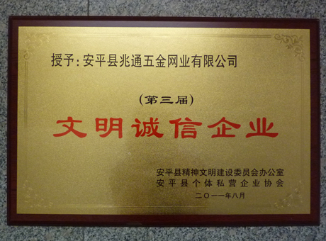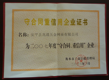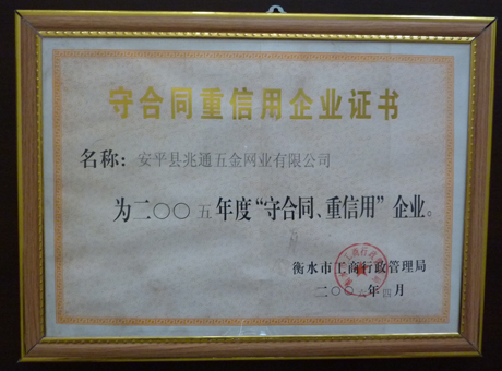 您當前位置:安平縣兆通五金網業(yè)有限公司 >> 公司榮譽